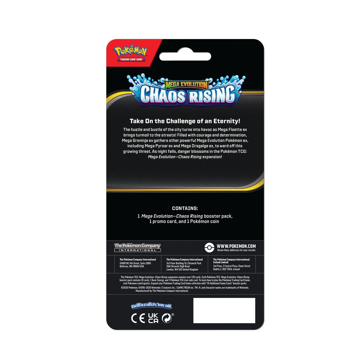 De set Mega Evolution Chaos Rising verschijnt op 22 mei 2026 en staat in het teken van krachtige Mega Evolution Pokémon ex zoals Mega Greninja ex, Mega Floette ex, Mega Pyroar ex en Mega Dragalge ex. Een premium checklane blister is vooral interessant voor klanten die naast een booster pack ook graag een promo kaart en extra verzamelitem willen ontvangen.