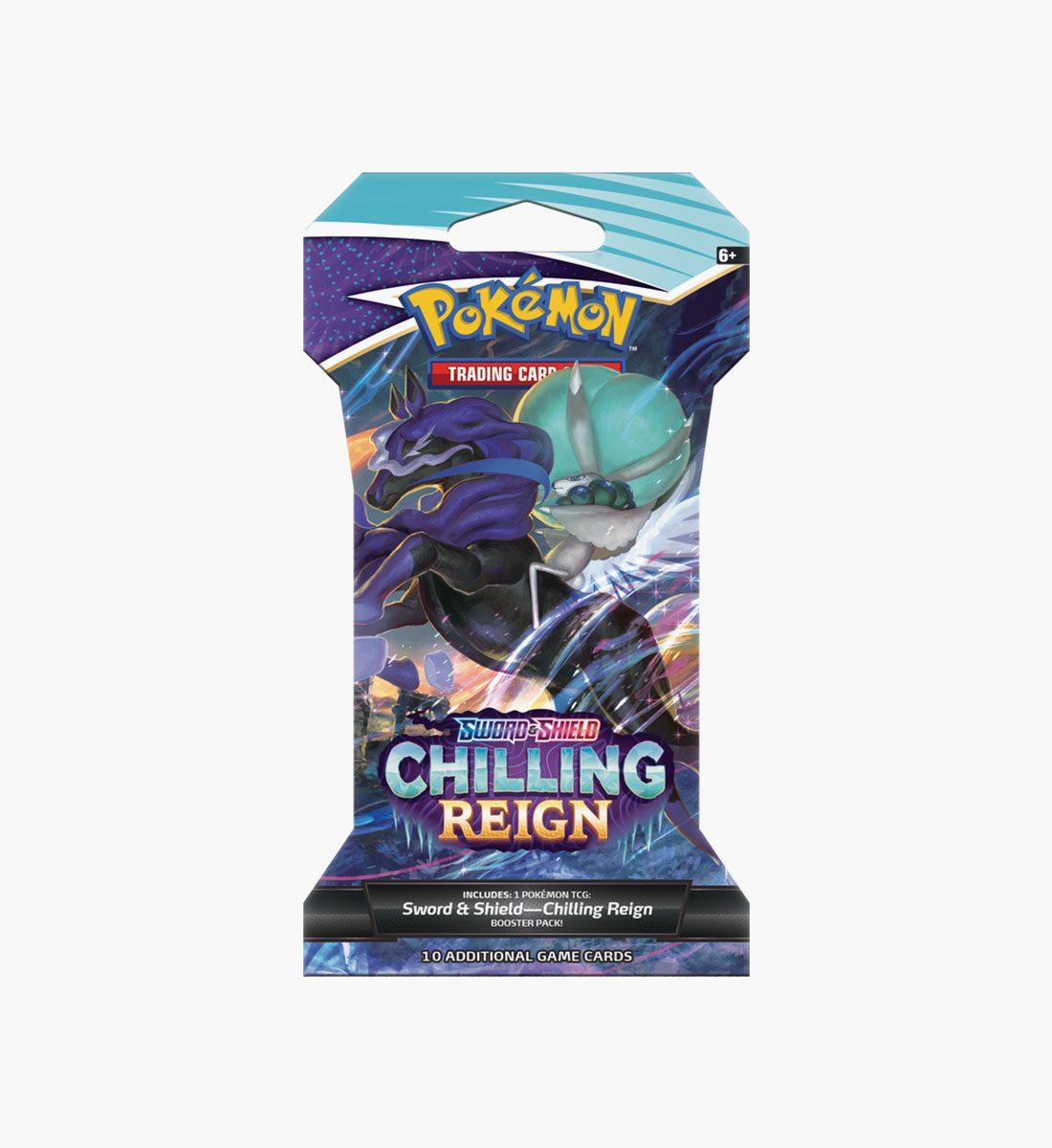 Pokémon Chilling Reign Sleeved Booster pack van de Sword & Shield series. Deze set kent 5 verschillende pack arts.