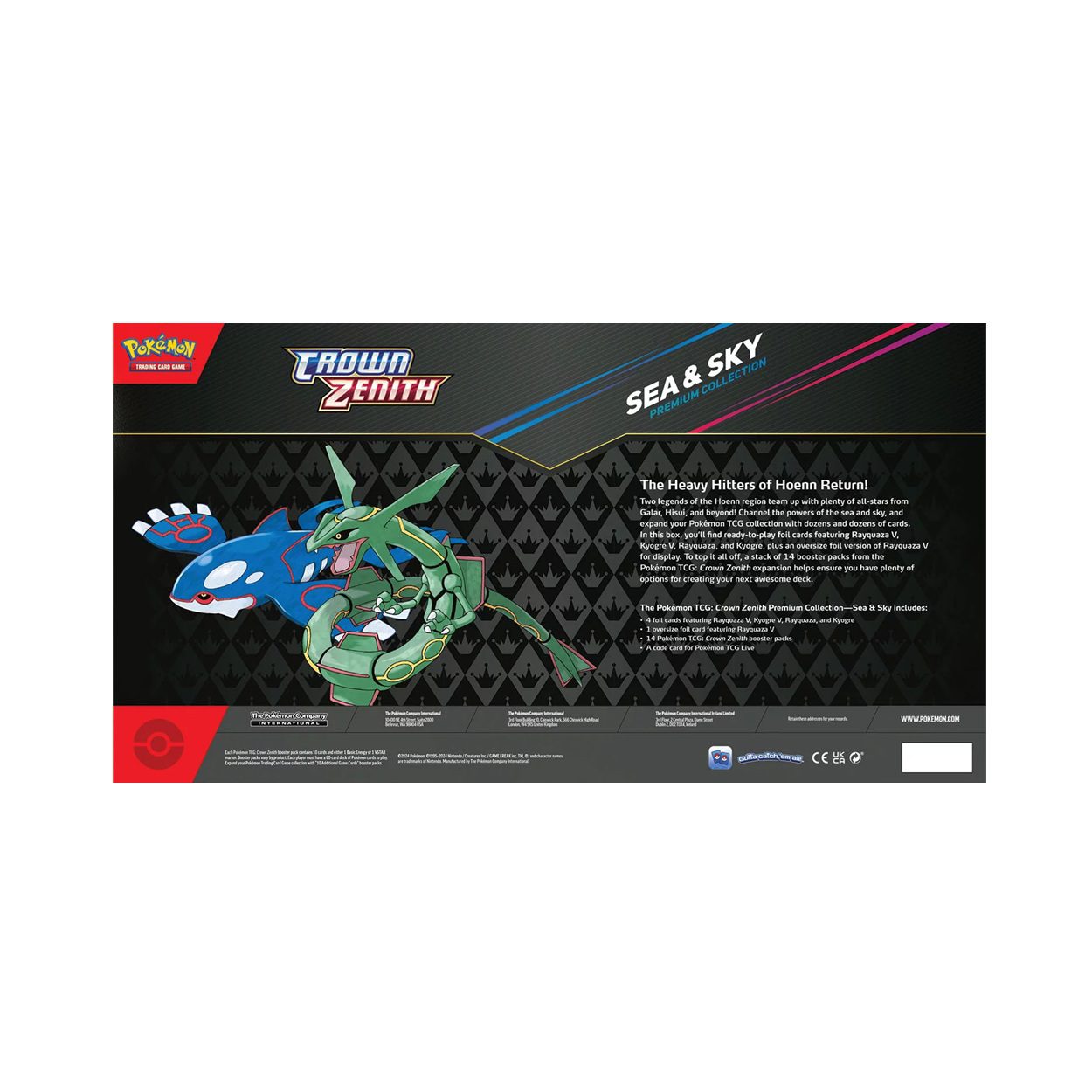 Breng de legendarische kracht van zee en lucht samen met de Crown Zenith Sea & Sky Premium Collection. Deze uitgebreide Pokémon TCG collectie staat volledig in het teken van twee iconische Pokémon uit de Hoenn-regio: Rayquaza en Kyogre. Een prachtige box voor verzamelaars én spelers die hun collectie willen uitbreiden met exclusieve promo’s en een flinke hoeveelheid booster packs.