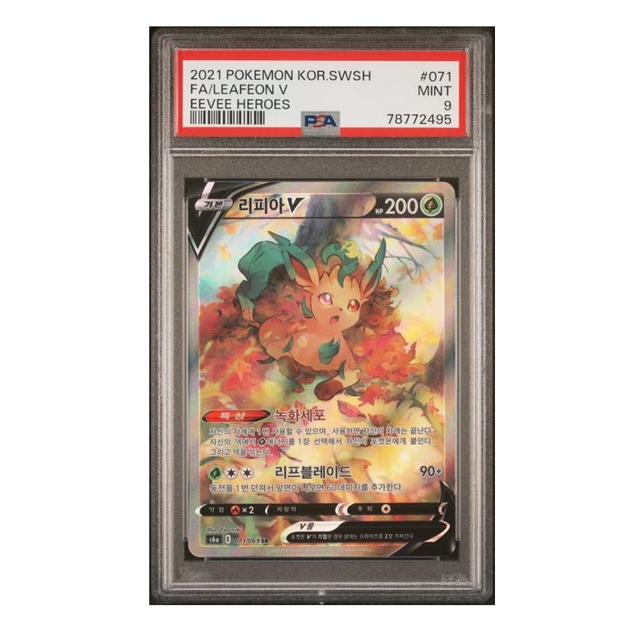 FA/LEAFEON V POKEMON KOREAN SWORD & SHIELD EEVEE HEROES PSA 10.