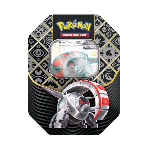 De Pokémon SV04.5 Paldean Fates EX Tin Iron Threads bevat: