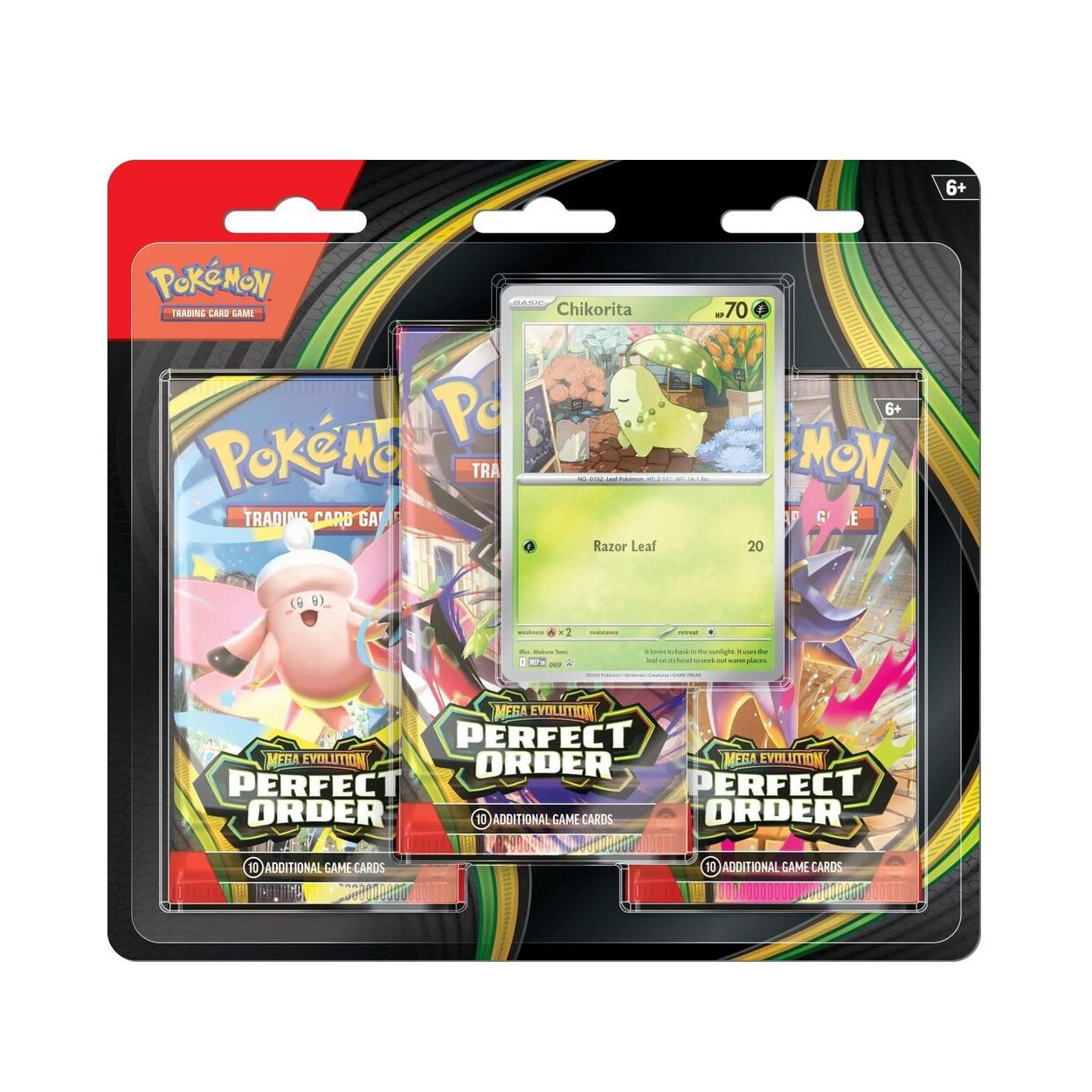 Pokémon Mega Evolution Perfect Order 3 Pack Blister Chikorita.