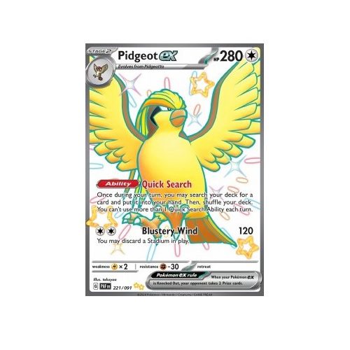 Pidgeot ex (PAF 221) van de Scarlet & Violet Paldean Fates.
