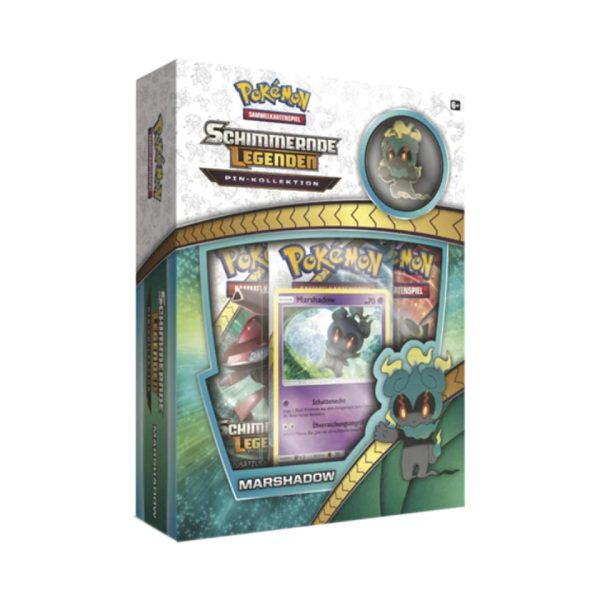 Super mooie Shining Legends Marshadow Pin Collection box uit de Sun & Moon Shining Legends serie. Deze Shining Legends Marshadow Pin Collection box bevat zowel Shining Legends booster packs als ook een unieke pin van de Lightning Pokémon Marshadow.