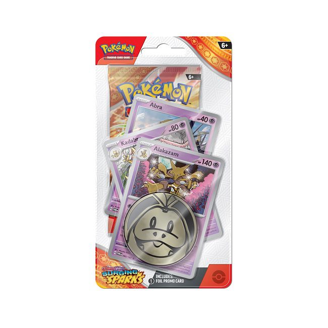 Surging Sparks Premium Checklane Blister met de Alakazam promo's.